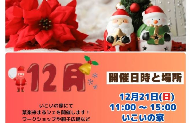 2022年12月23日(金)~12月25日(日)各日10時~18時まで開催される「イオンモール橿原 Xmasマーケット」への出店希望者を募集します。